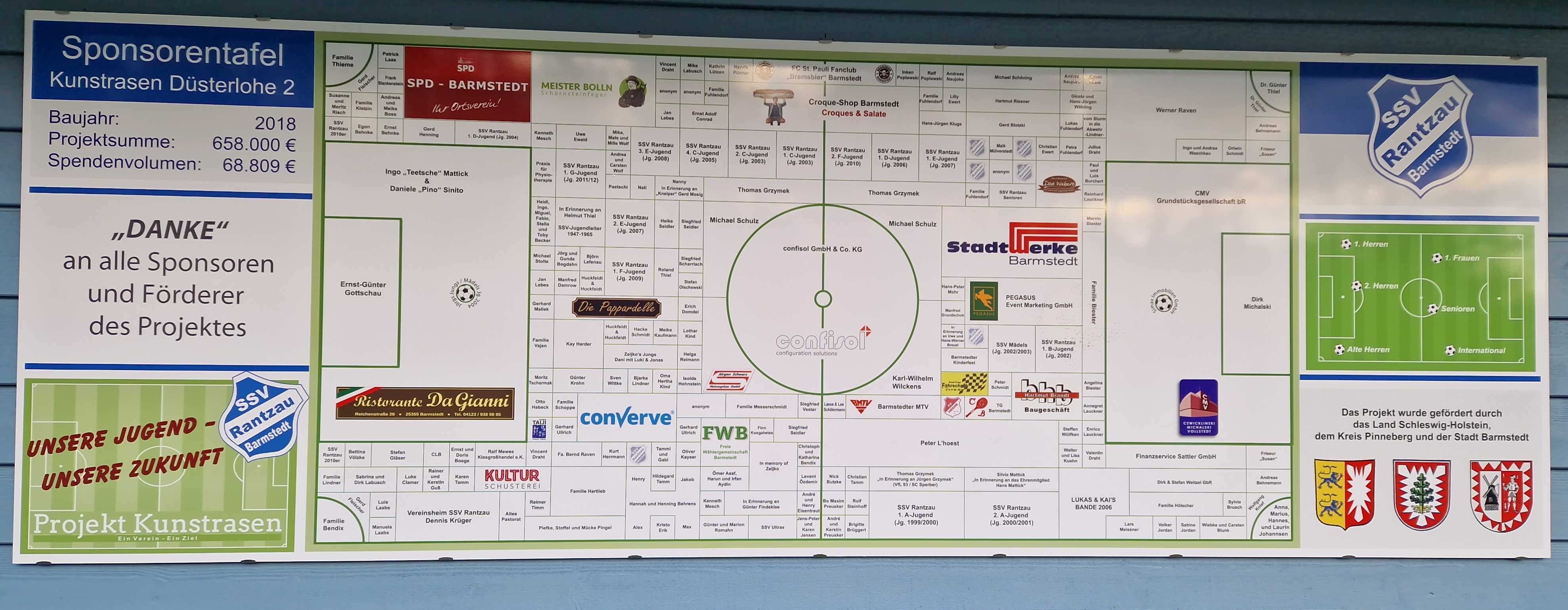 Alle Gönner des SSV, die sich seinerzeit eine oder mehrere Parzellen des Kunstrasens sichern konnten, sind nun namentlich für jedermann sichtbar.