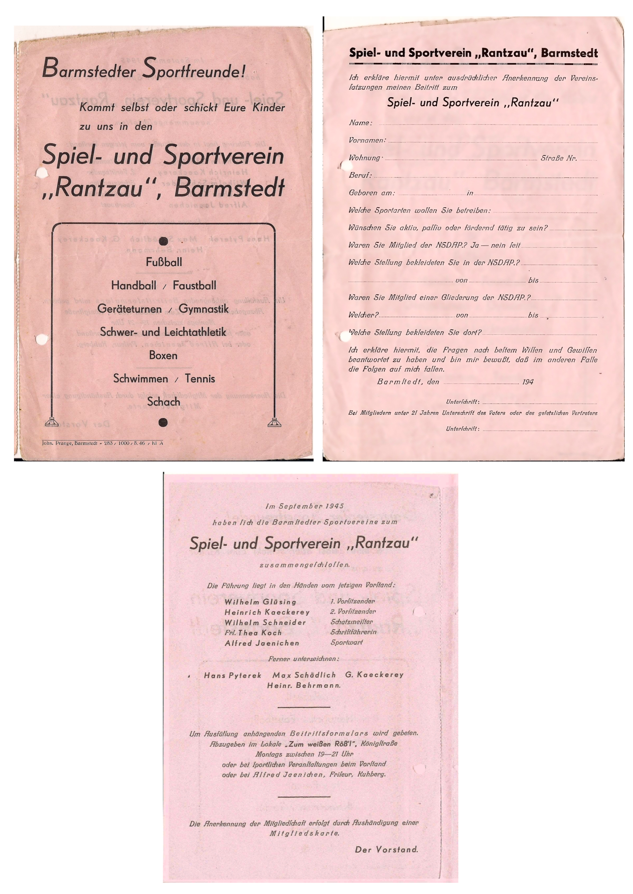 Barmstedter Fußballgeschichte pur. Zur Erinnerung: Aus dem bis 1945 existierenden FC Rantzau war auf Beschluss einer Gründungsversammlung der heutige SSV Rantzau geworden. Damit sollten neben dem bisher alleinigen Fußball künftig weitere Sportarten betrieben und der Verein auf eine breitere Basis gestellt werden. Mit Handball, Faustball, Leichtathletik, Boxen etc. wurden denn auch bis in die 1950-iger Jahre diese und weitere Sparten erfolgreich angeboten. Damit war aus dem 1912 gegründeten FC (Fußballclub) Rantzau unser heutiger SSV (Spiel- und Sportverein) Rantzau geworden. Und die damals auszufüllenden „Beitrittsformulare“ sahen so aus: