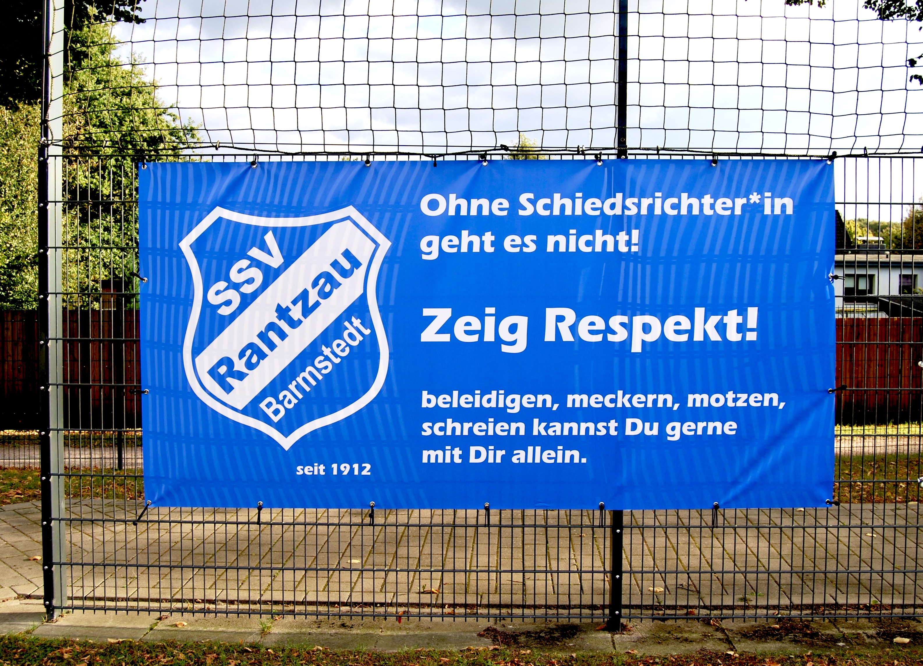 Ein starkes Zeichen für Respekt und Fairness auf und neben dem Platz: Dank der großzügigen Unterstützung der Kulturschusterei hängen ab sofort gleich zwei neue Banner auf unserer Sportanlage. Sie tragen die wichtige Botschaft: „Ohne Schiedsrichter*in geht es nicht! Zeig Respekt!“