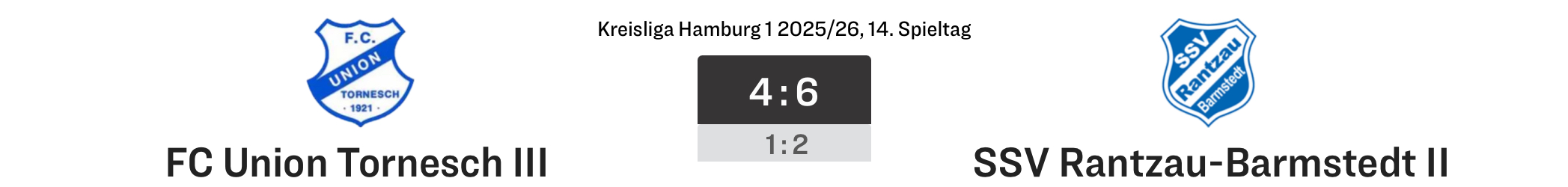 10 Tore fielen in der Auswärtspartie zwischen Union Tornesch 3 und Rantzau 2, vier Tore für die Gastgeber und sechs für den SSV Rantzau.