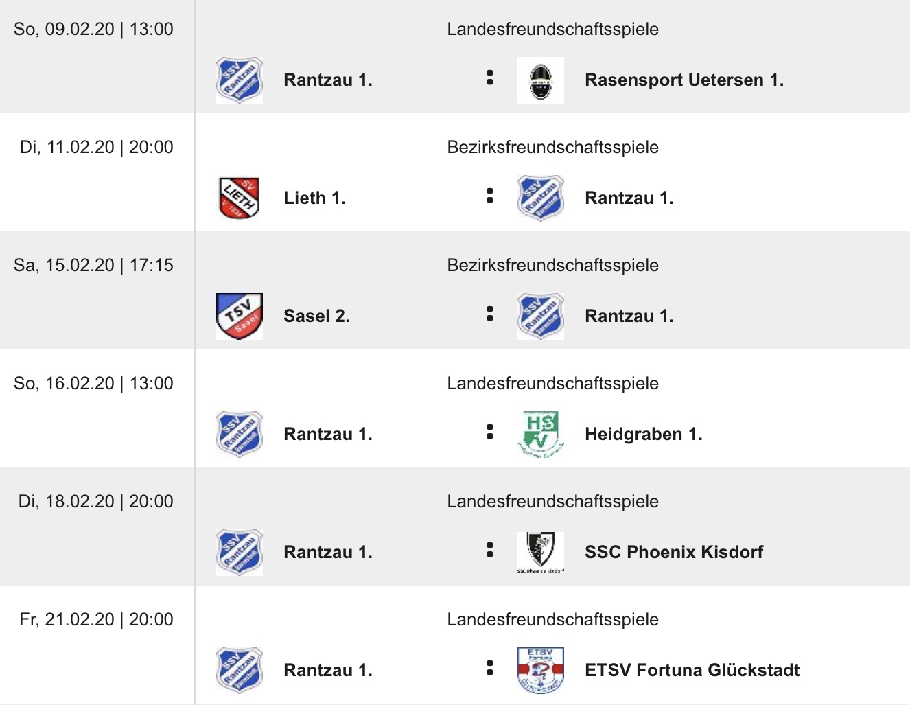 Eine Übersicht der geplanten Testspiele unserer Ligamannschaften (Stand 11.01.20).