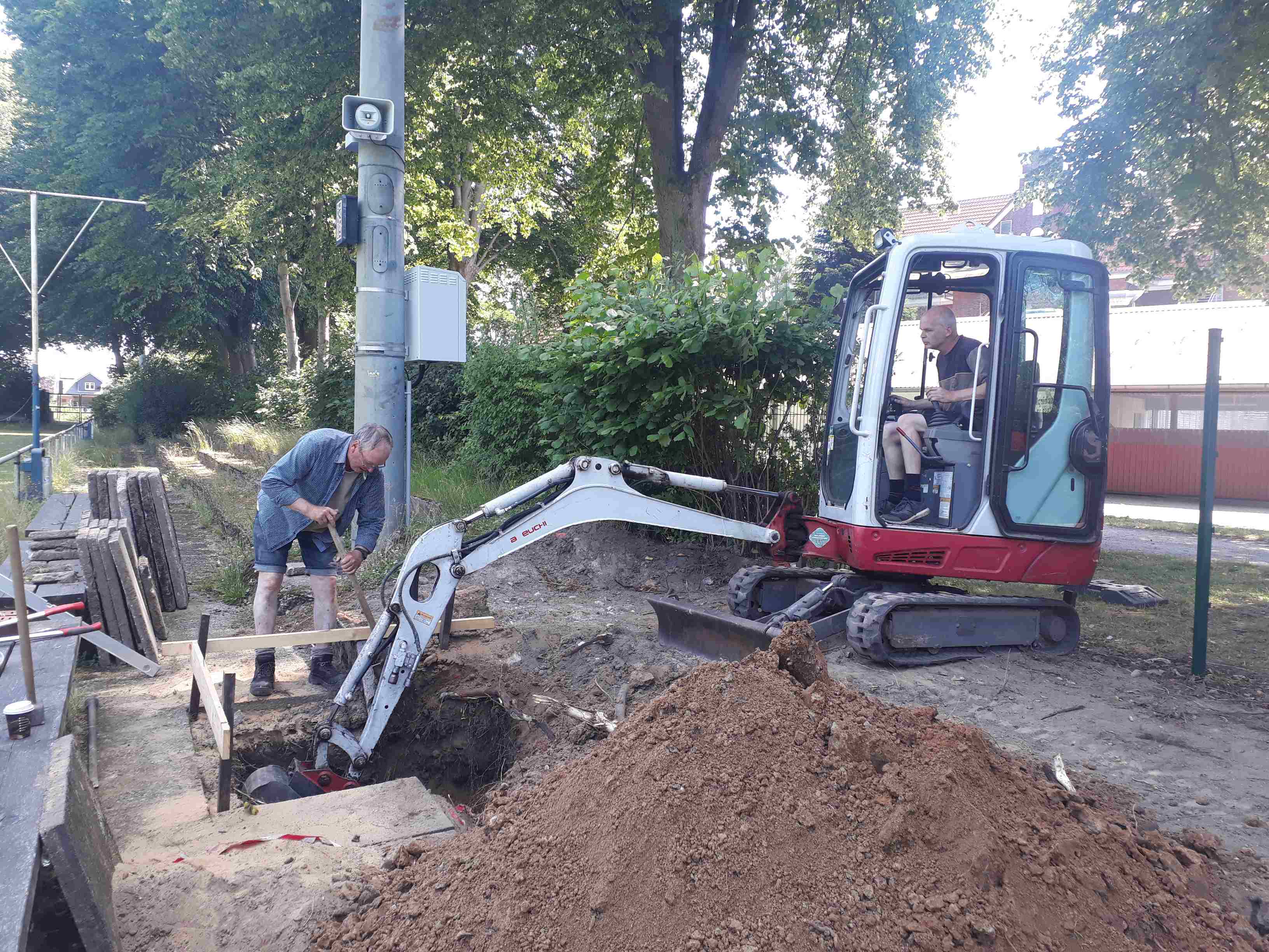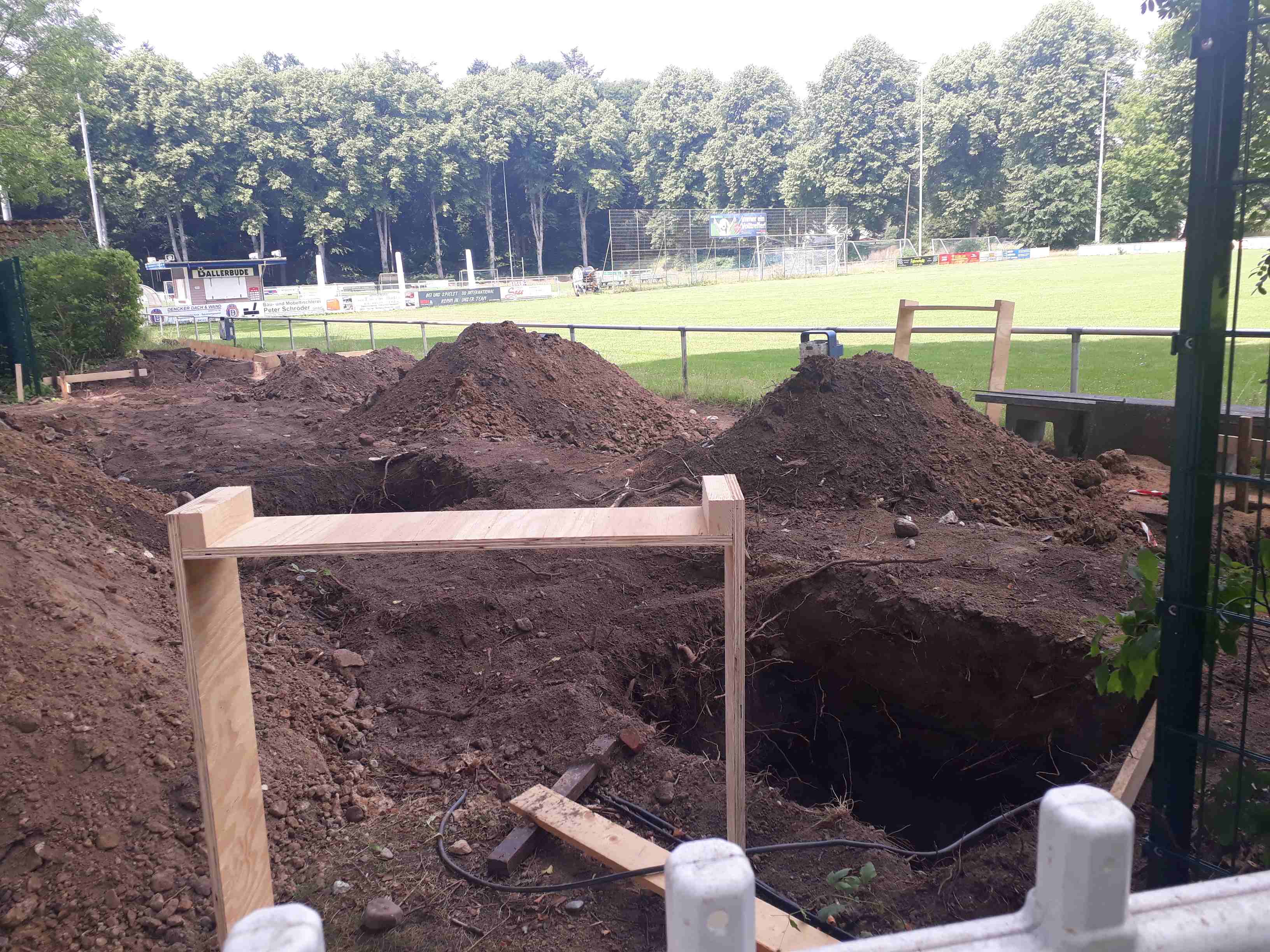 Bis zum Erkennen der charakteristischen Tribünenmerkmale wird es sicherlich noch etwas dauern, aber die besonders arbeitsintensiven Vorarbeiten mit dem Aushub der Fundamentgruben sind schon fast geschafft.