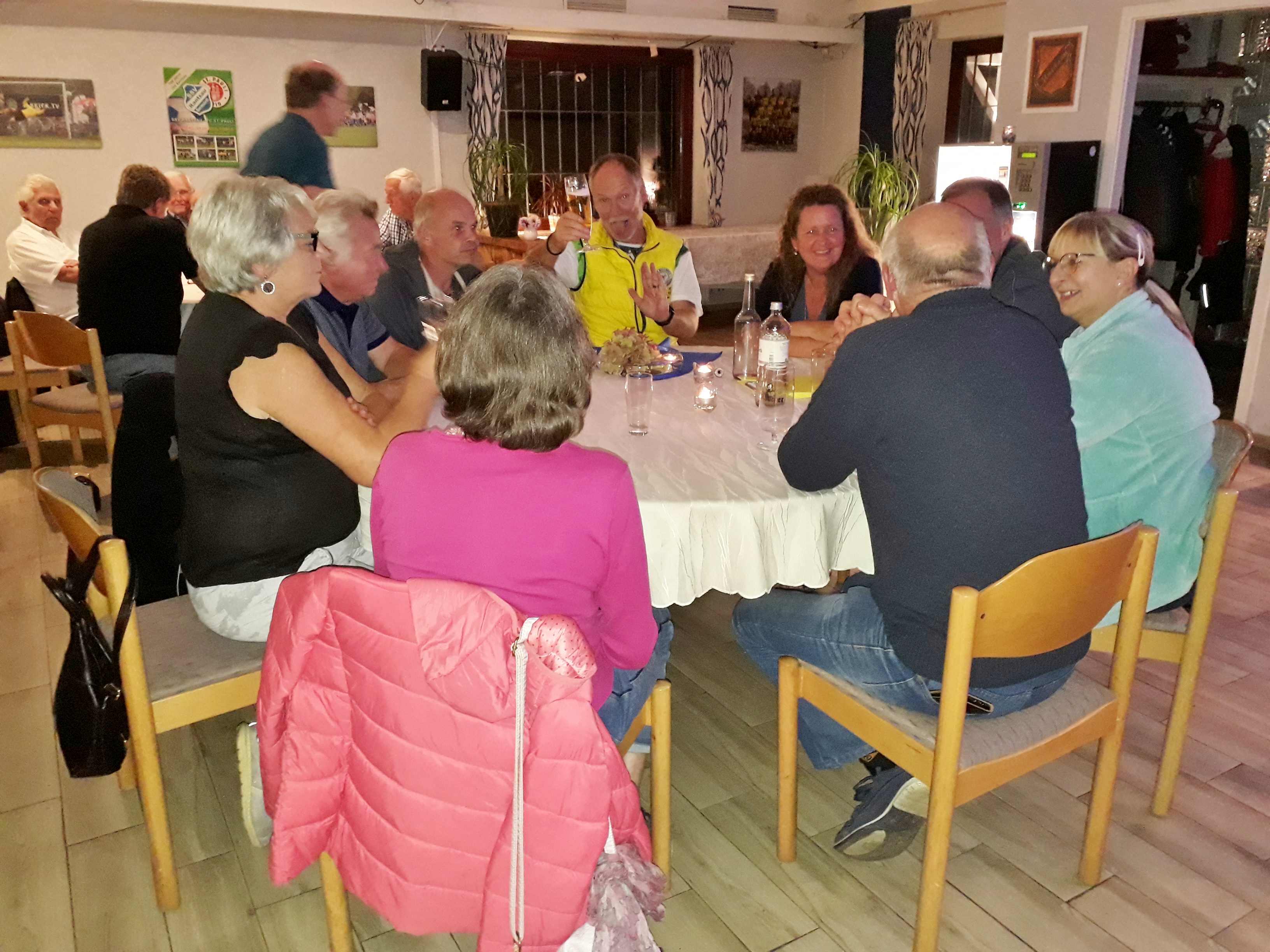 Wer viel arbeitet, darf auch mal feiern.... Nachdem sich die Handwerksarbeiten an der Sitztribüne auf der Düsterlohe langsam dem Ende zuneigen, wurden nun die Arbeitsgeräte gegen die Boßelkugel getauscht, um sich in der nicht so einfachen Wurftechnik zu üben. Vorher wurden im SSV-Vereinsheim Kaffee und Kuchen serviert und anschließend ein deftiges Bratkartoffelmenü eingenommen. Und natürlich keine Frage, dass zum jährlichen Mannschaftsbeisammensein auch die Damen eingeladen waren. Wie nicht anders zu erwarten, eine gelungene Veranstaltung der Rantzauer Supersenioren.