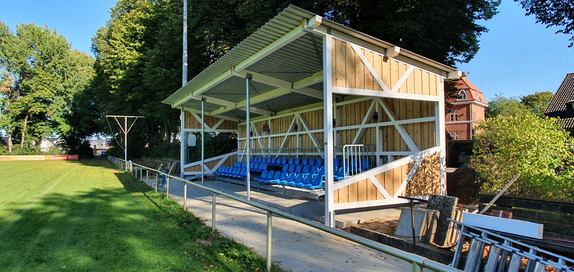Einweihung der neuen Tribüne Die Tribüne ist fertig und die Einweihung erfolgt beim ersten Landesligaheimspiel zwischen dem SSV Rantzau und Nienstedten am So 4.10.20