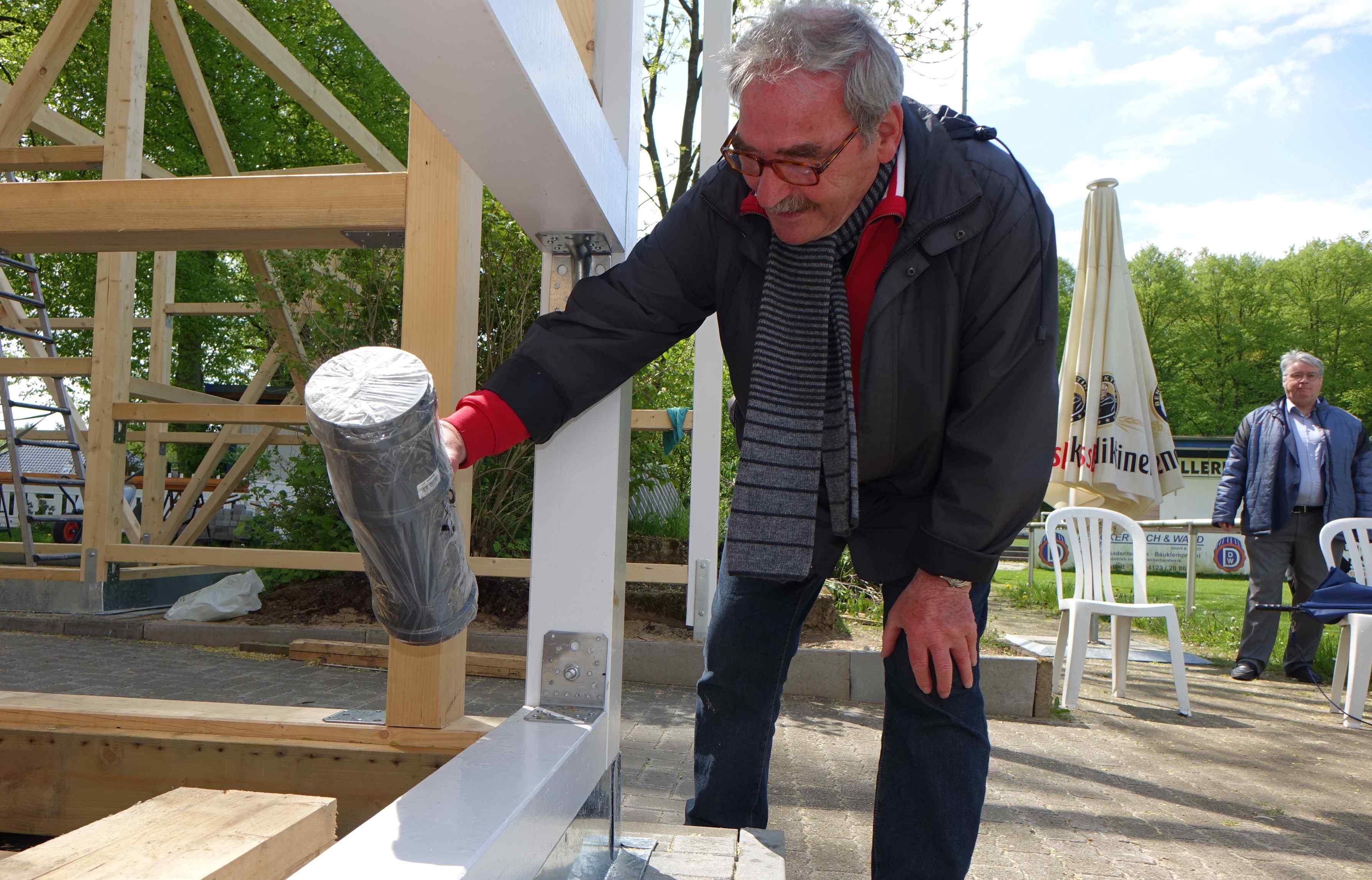 sowie bei der Errichtung der Vereinsheim-Terrassenüberdachung und der beispielhaften Sitztribüne