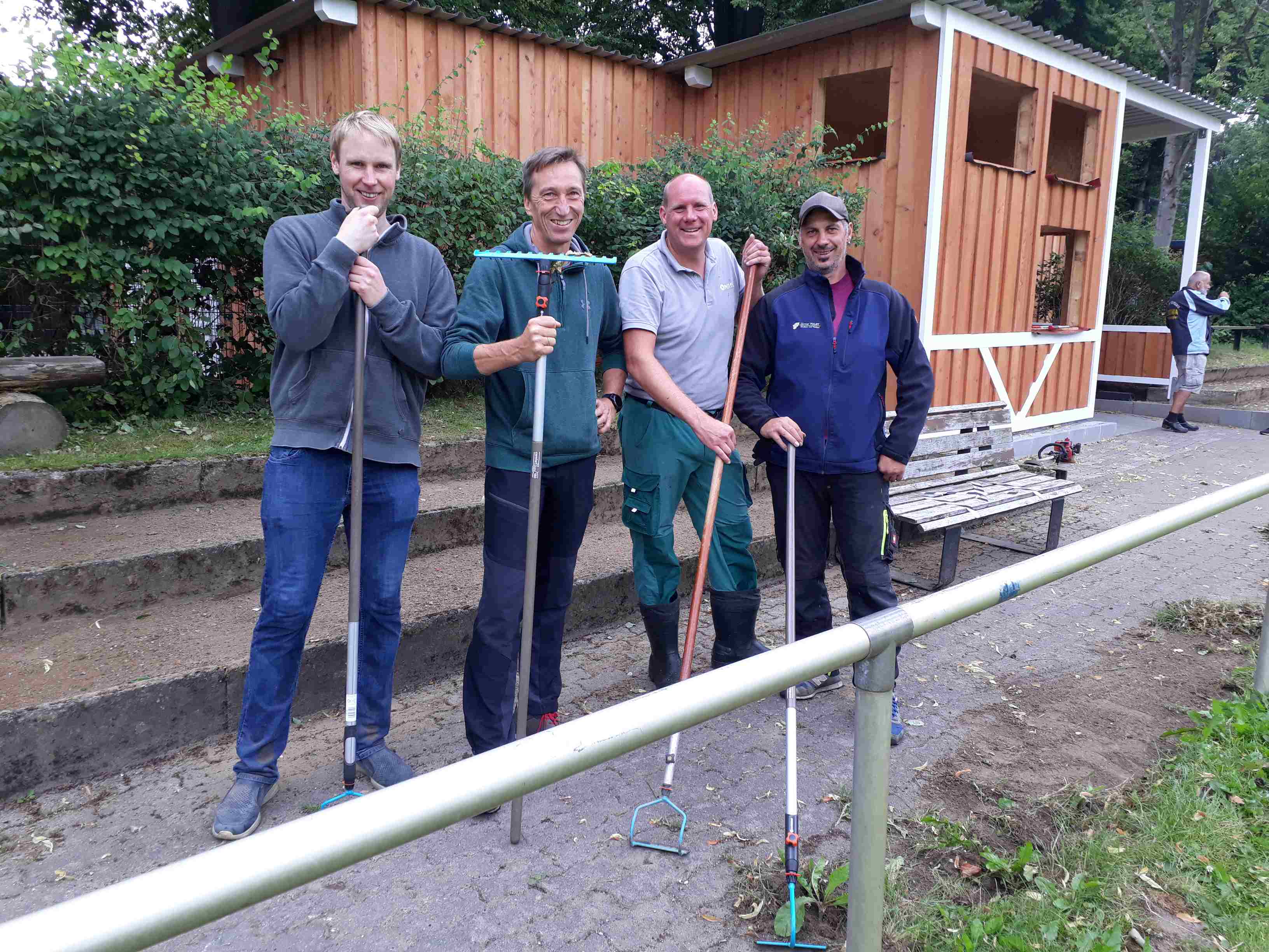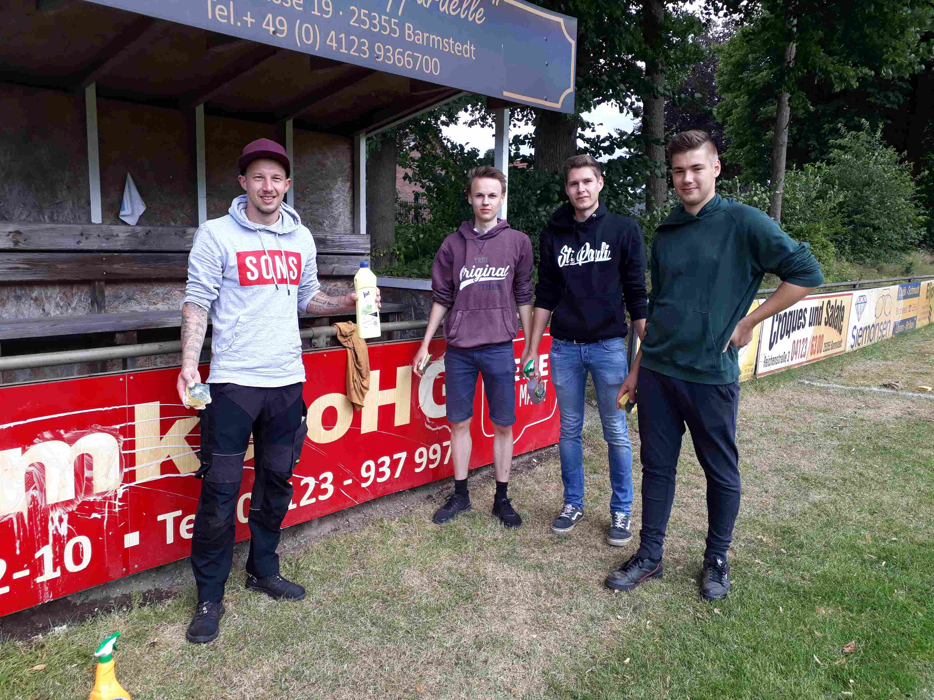 Dass die SSV-Superoldies die Ranking Liste der ehrenamtlichen Arbeitsdienstler auf der Düsterlohe mit weitem Abstand unangefochten anführen, ist kein Geheimnis. Doch die übrigen SSV-Teams stehen schon in den Startlöchern oder sind ihnen bereits dicht auf den Fersen, um das traditionsreiche Sportgelände auf der Düsterlohe kurz vor Saisonbeginn vorzeigefähig herzurichten. Konkret geht es diesmal um die Reinigung der Bandenwerbung sowie um die Säuberung der Stehterrassen. Die Aufnahmen zeigen fleißige Helfer aus den Reihen der Liga und II. Herren, der Alten Herren, der SSV-Senioren sowie den SSV- Veteran Mattschi Bogdahn mit seinem Traktor.