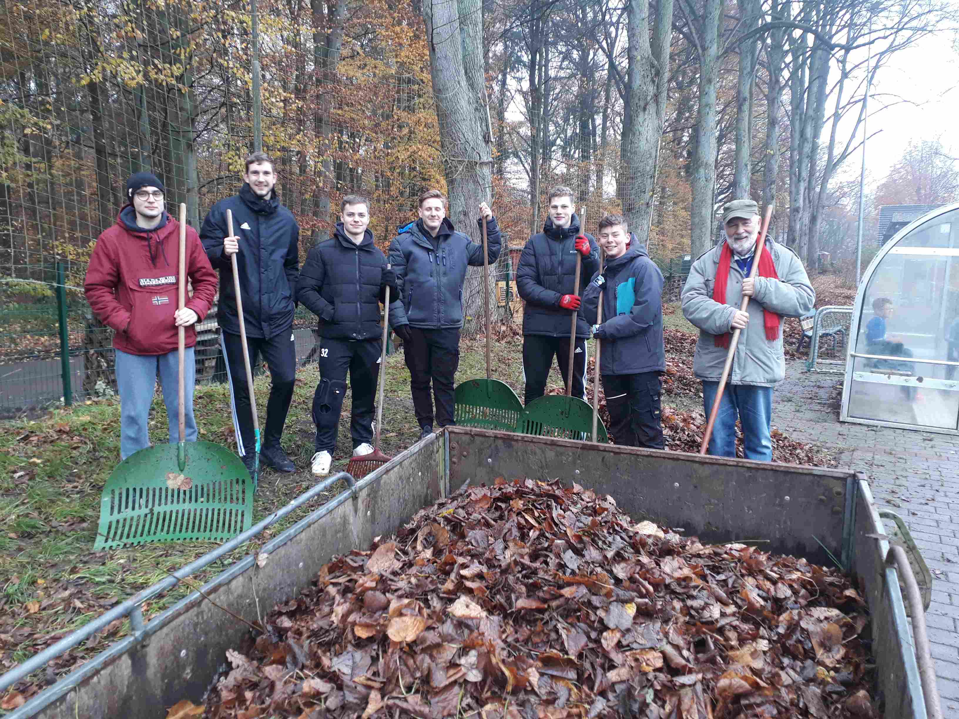 Nachdem bereits zuvor übrige SSV-Teams ihren Arbeitsdienst geleistet hatten, tauschten nunmehr die Aktiven der 2. Herren um Paul Wiemeler das runde Leder gegen Harke und Schubkarre, um die Düsterlohe vom Herbstlaub zu befreien. Und natürlich war auch wieder Platzchef und SSV-Haudegen "Mattschi" Bogdahn dabei, um die Plätze für den Spielbetrieb fit zu machen. Unterstützt wurde er von Markus Feickert vom SSV-Senioren Team. Übrigens, die nächsten Arbeitsdiensttermine stehen bereits fest, nämlich die Samstage 27. 11. und 11. 12., jeweils von 9.30 bis 12.30 Uhr.