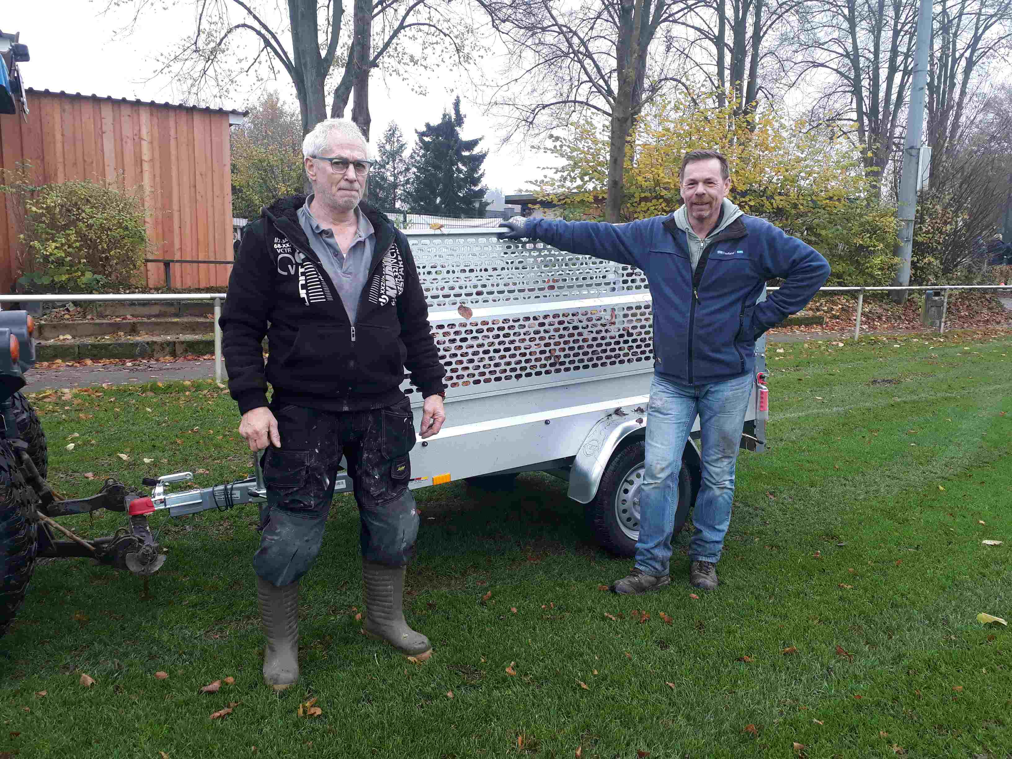 Sie kamen mit dem Laubfahren kaum hinterher: Platzwart Mattschi Bogdahn und Markus Feickert (von den SSV- Senioren)