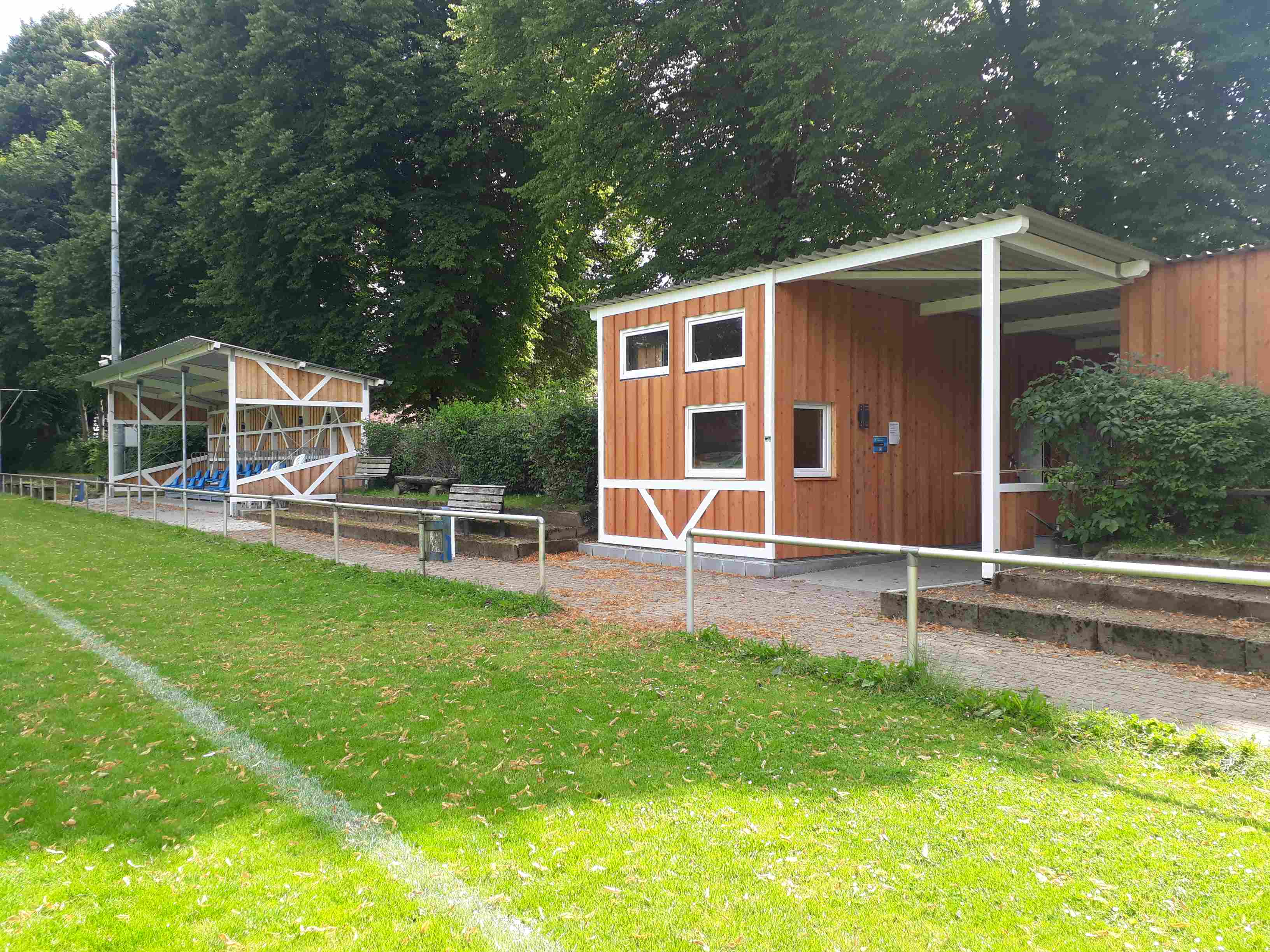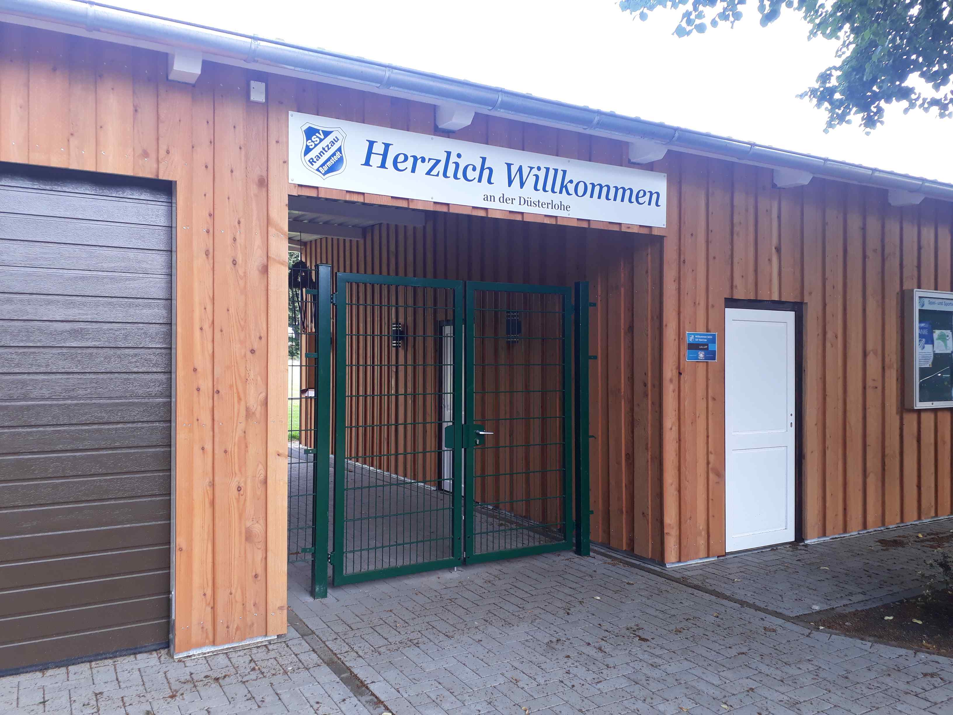 Juli 2021 - Ein Meilenstein in der Geschichte der Düsterlohe. Mit dem neuen Multifunktionsgebäude erhält das traditionsreiche Rantzauer Sportgelände endlich ein repräsentatives Aussehen. Neben der Kassiererin und dem Stadionsprecher finden hier Technik sowie weitere Gerätschaften geeignete Räumlichkeiten.