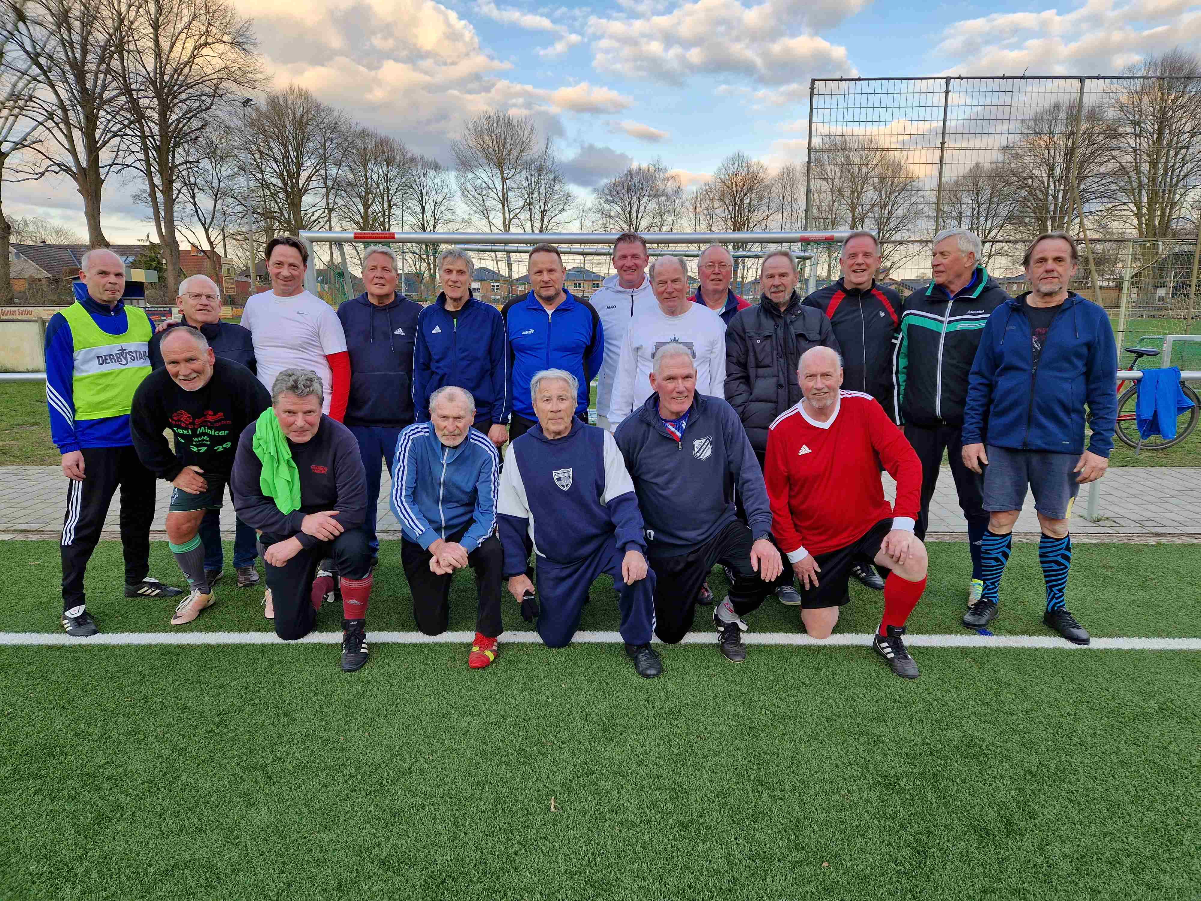 Die SSV Superoldies: stehend von links: Thomas Grzymek, Hans-Jürgen Jensen, Ronald Hentzgen, Michael Schöning, Werner Burchert, Bernd Kunz, Dieter Pliestermann, Reimer Timm, Hans-Jürgen Scharlach, Gerd Mallek, Thorsten Labusch, Hartmut Evers, Otto Gravert kniend Ingo Mattick, Günther Vollstedt, Siegfried Vester, Manfred Grundschok, Klaus Otto, Burkhard Ossenbrüggen