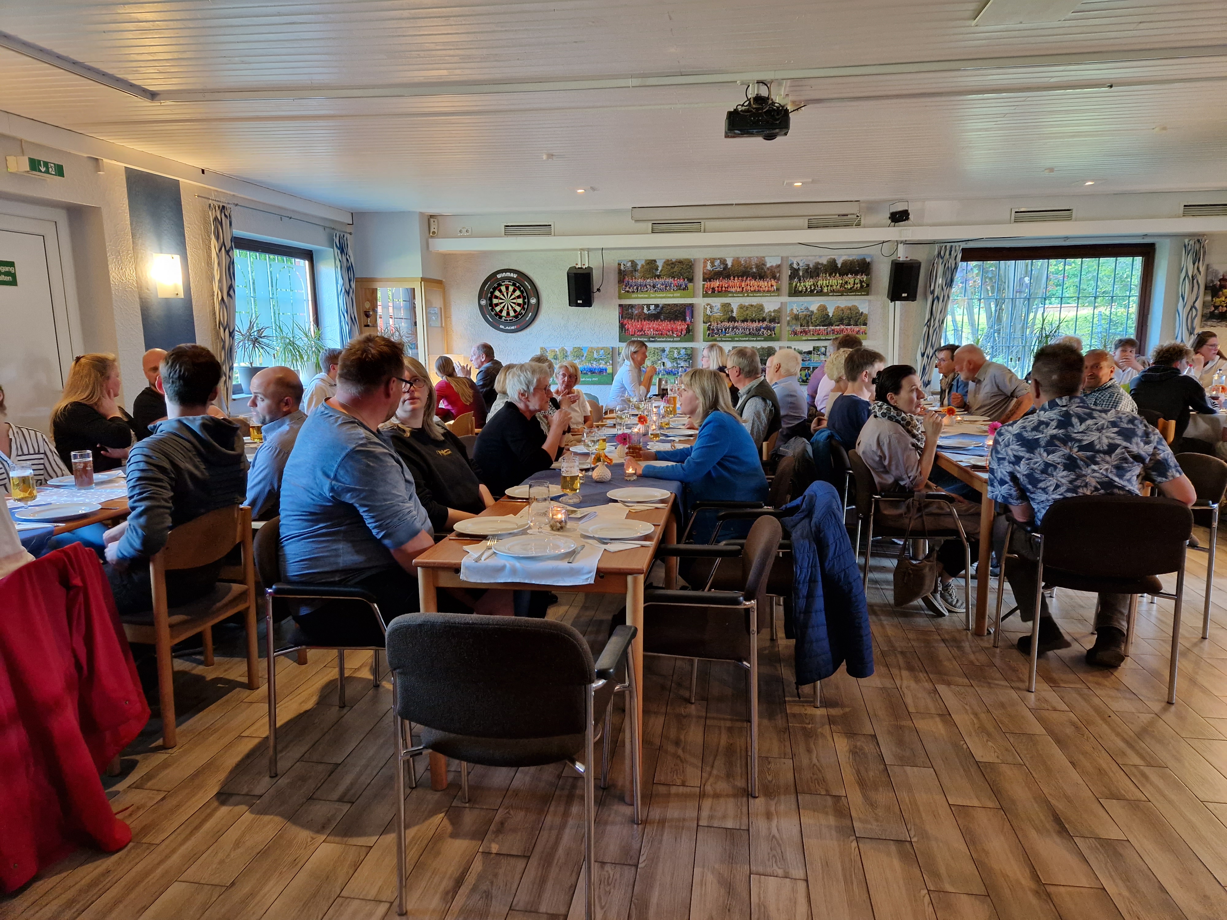 Im Rahmen des 111. jährigen Vereinsjubiläums hatte der SSV Rantzau am letzten Freitag zu einem "Danke-schön"-Abend für die ehrenamtlich Engagierten eingeladen, und Werner Raven konnte ein volles Vereinsheim mit 71 Gästen begrüßen. In seinen Begrüßungsworten wies Werner Raven auf die vielen Erfolge in der langen Vereinsgeschichte hin, aber auch auf die Bewältigung sehr schwerer Zeiten. Er hob hervor, dass der SSV in den letzten 11 Jahren bis heute eine in vielerlei Hinsicht sehr erfolgreiche Periode hinter sich hat: Im sportlichen Bereich stehe der Verein so gut da wie seit Jahrzehnten nicht, und mit Stolz blicke der Verein auf die Verschönerung und Modernisierung der Sportanlage. Werner Raven: "Dies alles war und ist nur möglich, weil es immer wieder Menschen gab, die sich ehrenamtlich für den Verein, für den Fußballsport in allen Altersklassen und auch für ein gutes Vereins- und Gemeinschaftsleben engagiert haben und so den Verein am Leben gehalten haben. Alle, die heute hier erschienen sind, gehören zu diesem Kreis unserer aktuell ehrenamtlich Engagierten, und mit der heutigen Einladung möchte der Verein Euch ausdrücklich Danke-schön für Euren tollen Einsatz sagen !"