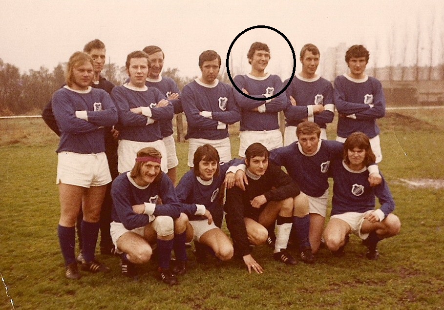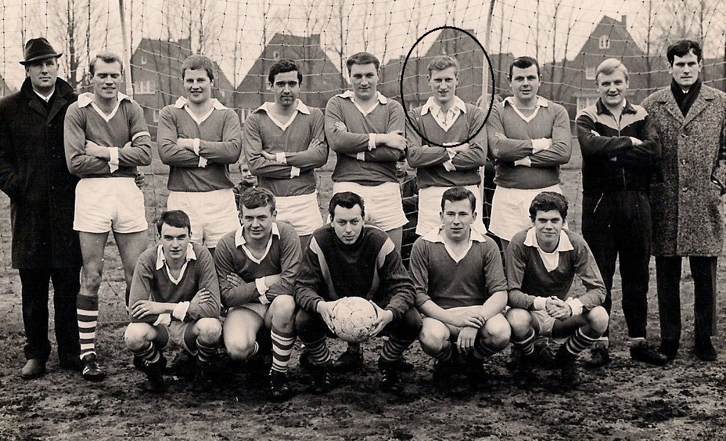 1969 SSV 1. Herren (in Antwerpen ???) stehend (v. l.): Hans-Peter Nicolei, Uwe Vollstedt (im Trainingsanzug), Hannes Pahl, Ingo In den Birken (dahinter), Jürgen Kawalek, Eckhart Dencker, Günther Schmuck, Hans-Peter Mohr kniend: Manfred Nahnsen, Walter Schifkowski, Torwart Uwe Boll, Franz Krüger, Gerd Prüß