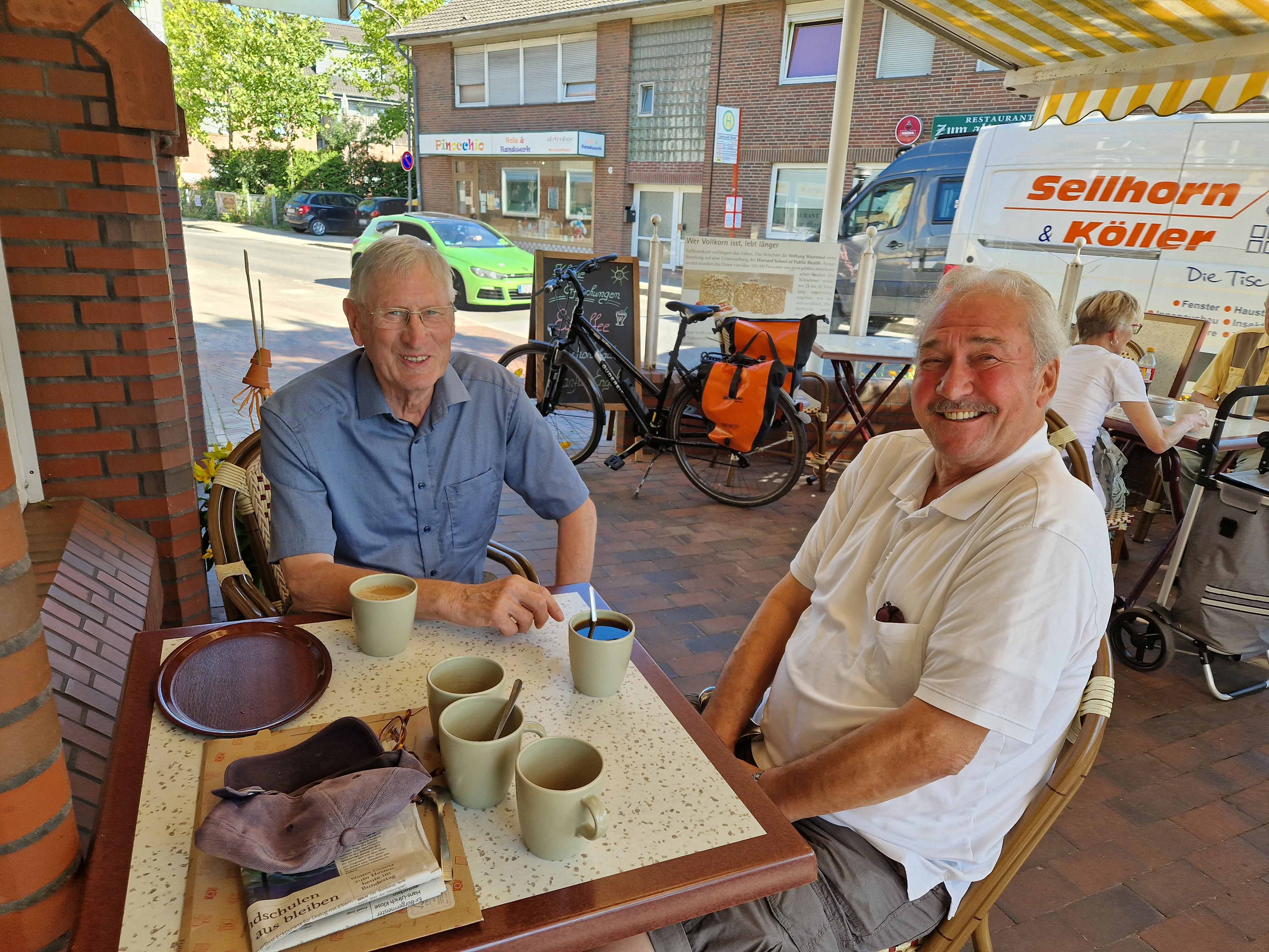 … und 2023 beim Kaffee: strahlend und guter Laune - Willi Hachmann und Eckhart Dencker