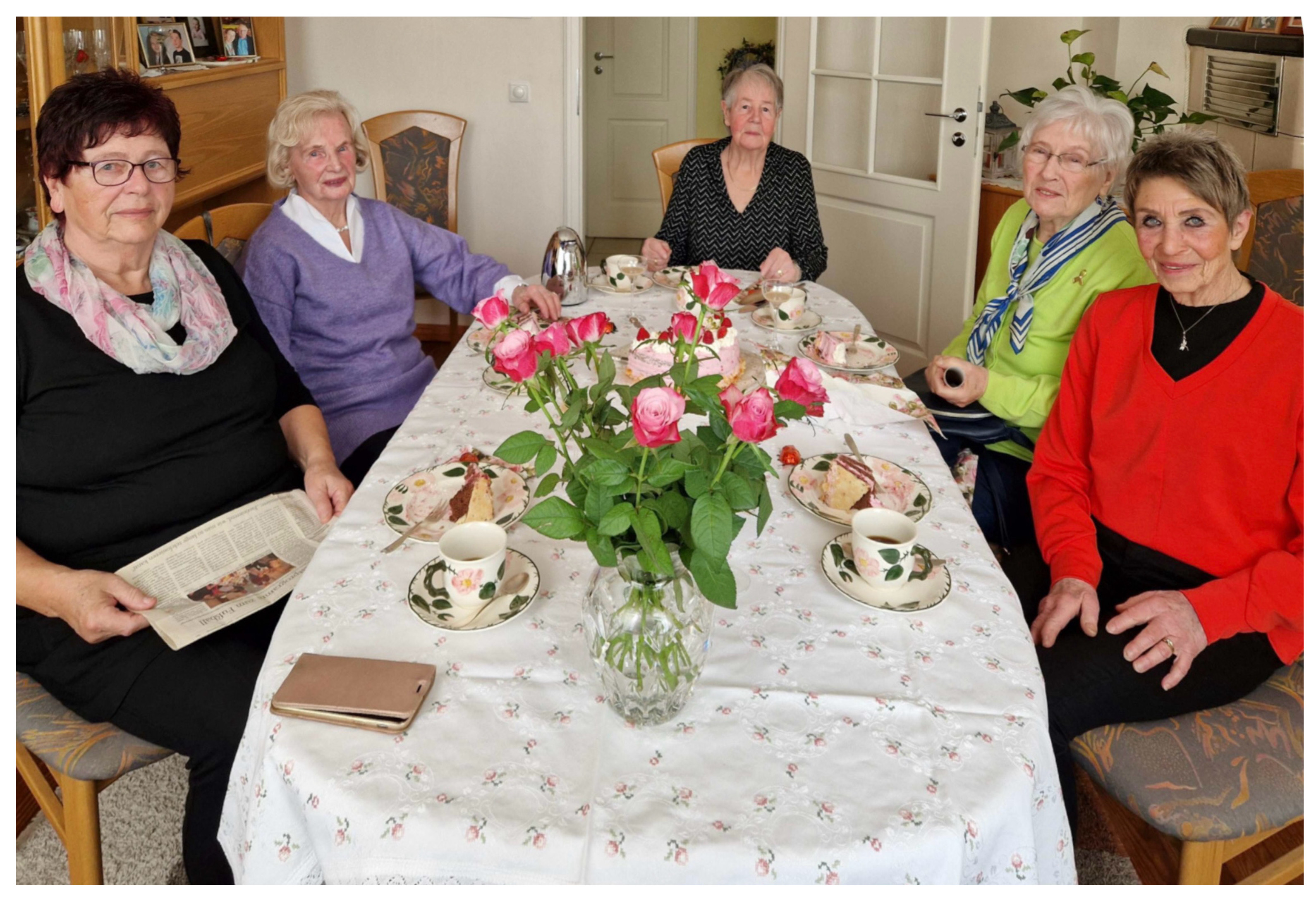 …. und das schon seit vielen Jahrzehnten. Begonnen hatte die Sympathie für den SSV mit der Fußballleidenschaft ihrer Ehemänner. Diese spielten allesamt seit ihrer frühesten Kindheit auf der Düsterlohe, wechselten über den Ligabereich schließlich zu den Senioren. Und während sie trainierten und um Punkte kickten, wurde aus dem damaligen lockeren Damentreff eine feste nahezu unzertrennliche Kaffeerunde der Ehefrauen. Und das nun schon seit fast vierzig Jahren. Selbst die Barmstedter Zeitung nahm dies vor Jahren zum Anlass, um auf diese ungewöhnliche Kaffeetafel hinzuweisen, auch wenn heute verständlicherweise der aktive Fußball aus dem Lebensmittelpunkt entschwunden ist. Und so werden die Damen das Ritual der regelmäßigen Kaffeerunde auch weiterhin liebevoll pflegen.