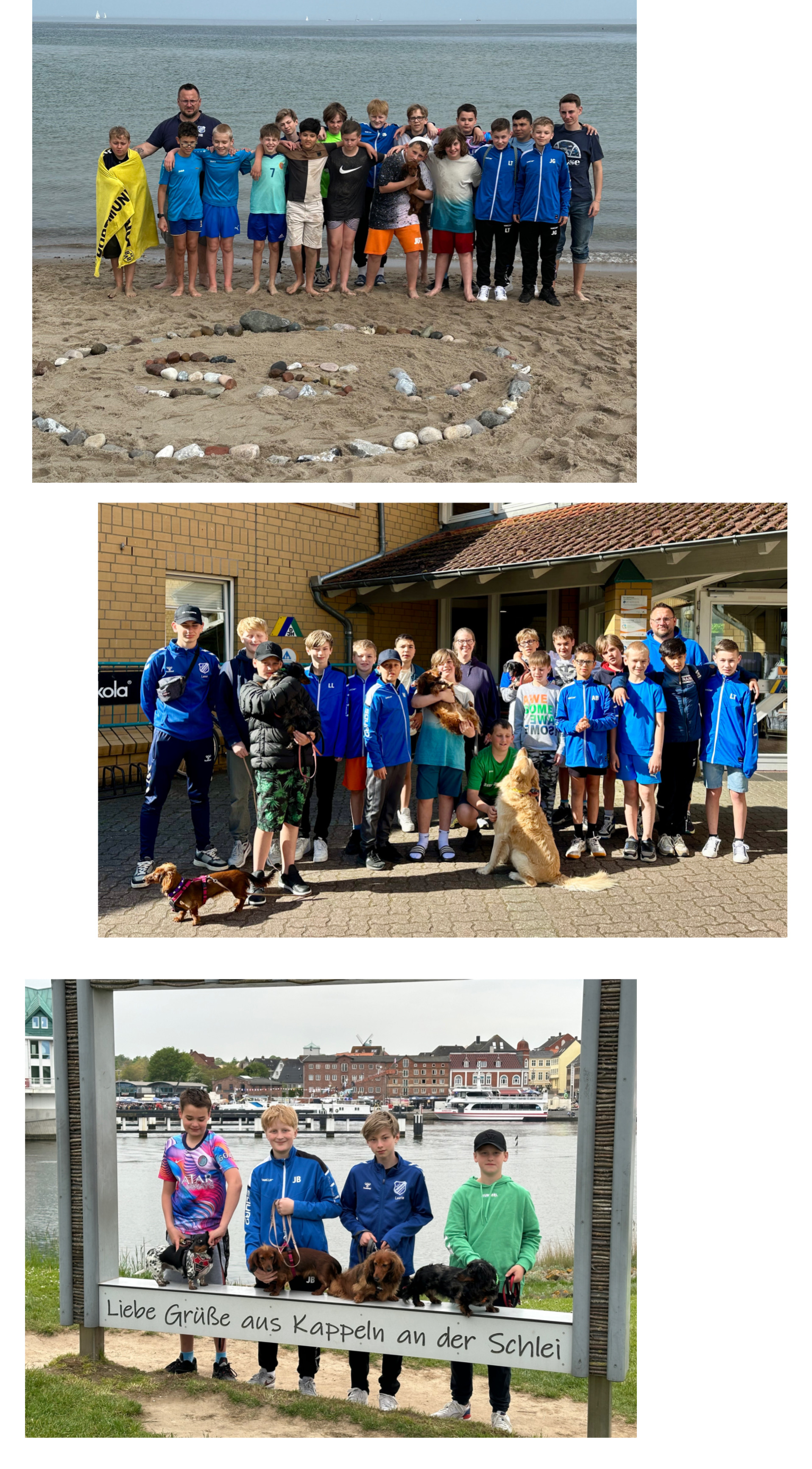 Bei sonnigem Wetter startete am Himmelfahrtstag die 2. D-Jugend zu ihrer 4-tägigen Mannschaftsreise nach Kappeln. 16 Spieler und die Verantwortlichen Heiko und Nicole Baltz mit 5 Hundemaskottchen, sowie der Co- Trainer Lasse Armbrecht, kamen nach knapp 90-minütiger Fahrt in der Jugendherberge Kappeln an. Es waren vier großartige und schöne Tage, in denen die Mannschaft ein weiteres Mal zusammenrücken konnte und den Teamspirit wieder eine Stufe nach oben gehoben hat. Einstimmig wurde entschieden, solch ein Erlebnis jährlich, wenn es die Mannschaftskasse erlaubt, zu wiederholen. Das gesamte Team kam positiv erschöpft am Sonntag am Heederbrook an und wurde von allen Eltern herzlich in Empfang genommen.