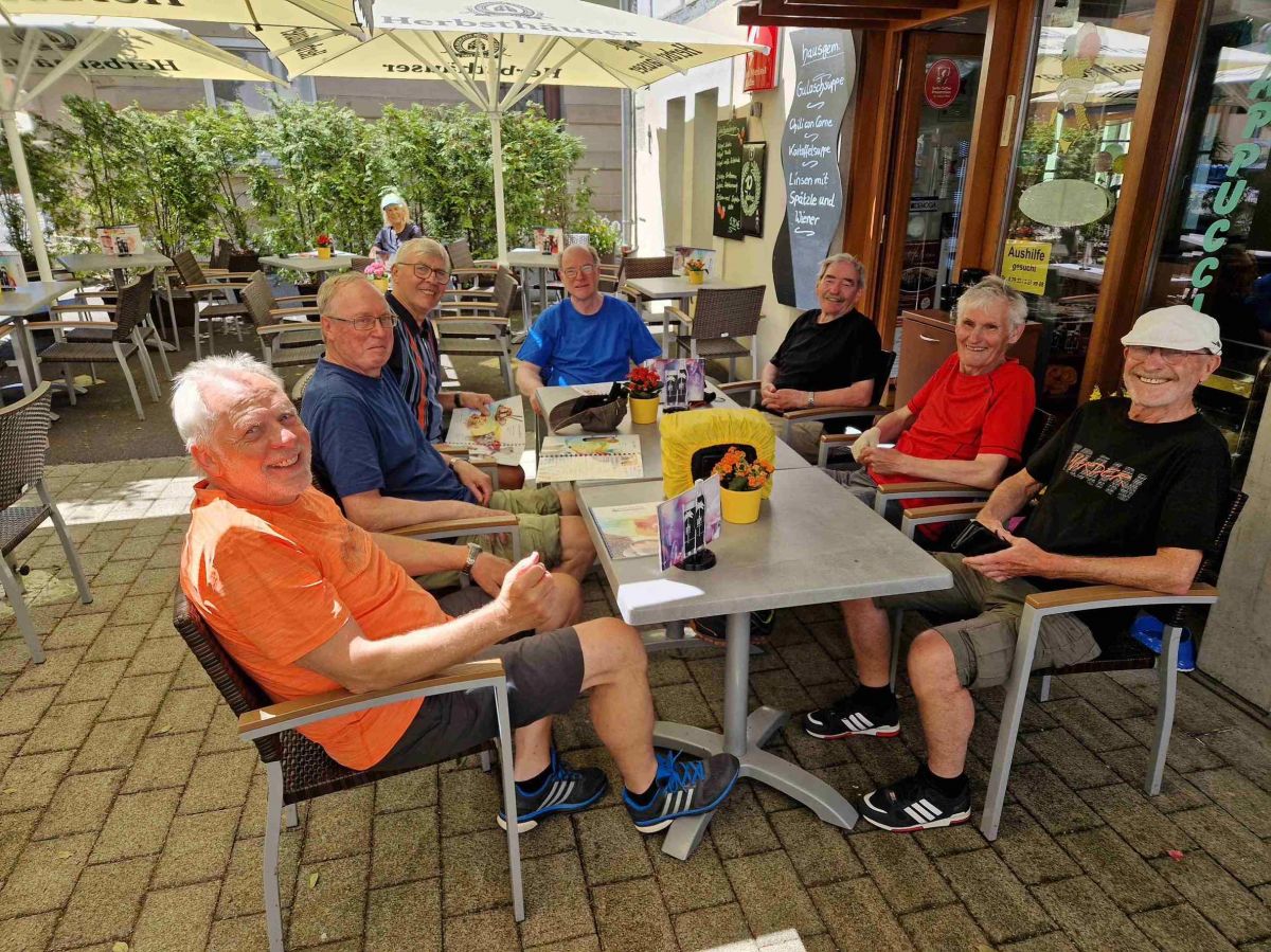 Wieder mal eine unschlagbare Tour mit vielen unwiederbringlichen Höhepunkten. Die allergrößte Überraschung war jedoch ein rein zufälliges Treffen mit dem Team der SSV-Supersenioren, die Tage zuvor ihre Fahrradtour gestartet hatten. Unter großem Hallo traf man sich total ungeplant auf einem Rastplatz nahe Rothenburg ob der Tauber. Das gibt`s nur einmal ….