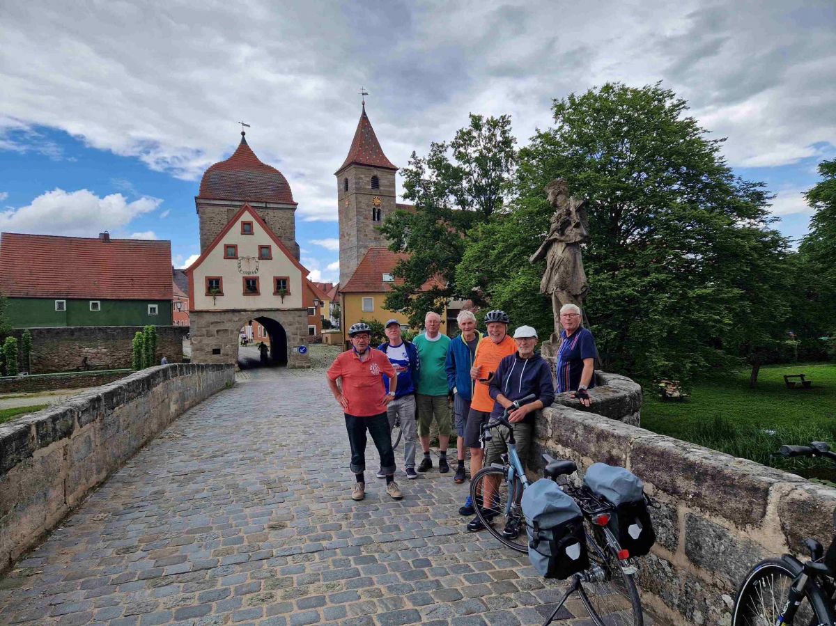 Die SSV-Superoldies waren mal wieder auf Fahrradtour. Nachdem in den Vorjahren überaus interessante deutsche Gegenden auf dem Zettel standen, ging es dieses Jahr ins Altmühl- und Taubertal. Eine Tour, die bekanntlich auf den Toplisten schönster deutscher Landschaften ganz weit oben steht, allerdings auch erhöhte Ansprüche an Kletterfähigkeit der Radler stellt. Und nach Bahnanreise starteten sie ihre pannenlose Siebentages-Tour nahe Ingolstadt und landeten nach weit mehr als dreihundert Kilometern in Würzburg.