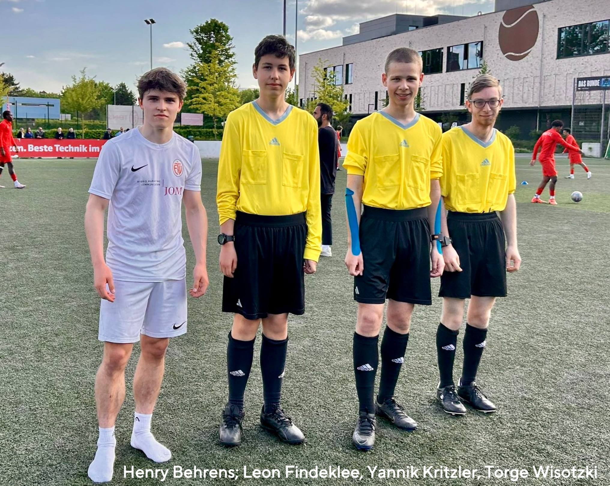Das junge Schiri-Gespann mit Schiri Yannik Kritzler und den Linienrichtern Leon Findeklee und Torge Wisotzki pfiffen am Wochenende die U18-Oberligapartie zwischen ETV und Eintracht Lokstedt, und sie brachten das Spiel mit einem Endergebnis von 12:1 für ETV reibungslos über die Bühne. "Es gab keine Probleme", so Leon Findeklee, der mit 14 Jahren zu den jungen Schiri-Nachwuchstalenten des SSV Rantzau zählt. Vor dem Spiel trafen sie Henry Behrens, einen anderen ehemaligen Rantzauer, der zuvor für ETV in der B-Jugend-Regionalliga beim 5:0-Erfolg gegen Bumenthal aus Bremen erneut in der Torjägerliste stand.
