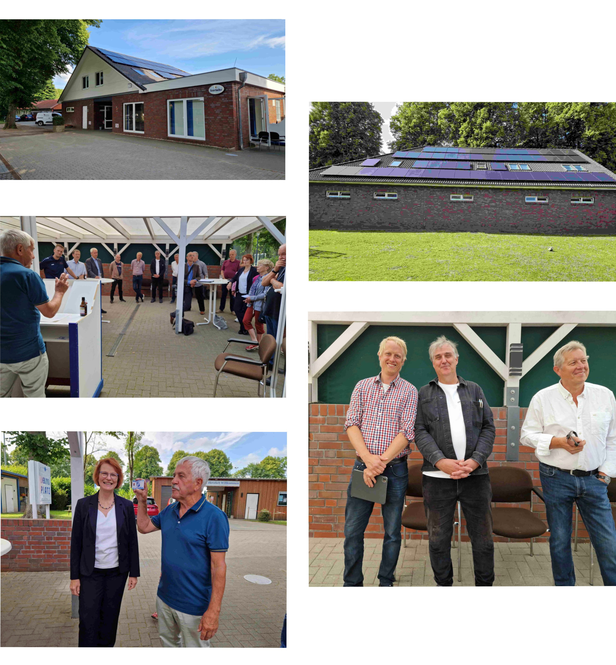 Zur Einweihung der Photovoltaikanlage des SSV Rantzau an der Düsterlohe begrüßte der SSV-Vorsitzende Hans Hansen rd. 20 Gäste, darunter Bürgermeisterin H. Döpke, Bürgervorsteher Ortwin Schmidt, Gunnar Werner (Sportausschussvorsitzender; Kreistag), Mark Müller (Geschäftsführer des Kreissportverbands), Andrea Siedenhans (Sport-Ausschussvorsitzende), Annette Bremer-Wilms (Klima-Ausschussvorsitzende) und Paul Maschke (Fachdienst Sport Kreisverwaltung Pinneberg).