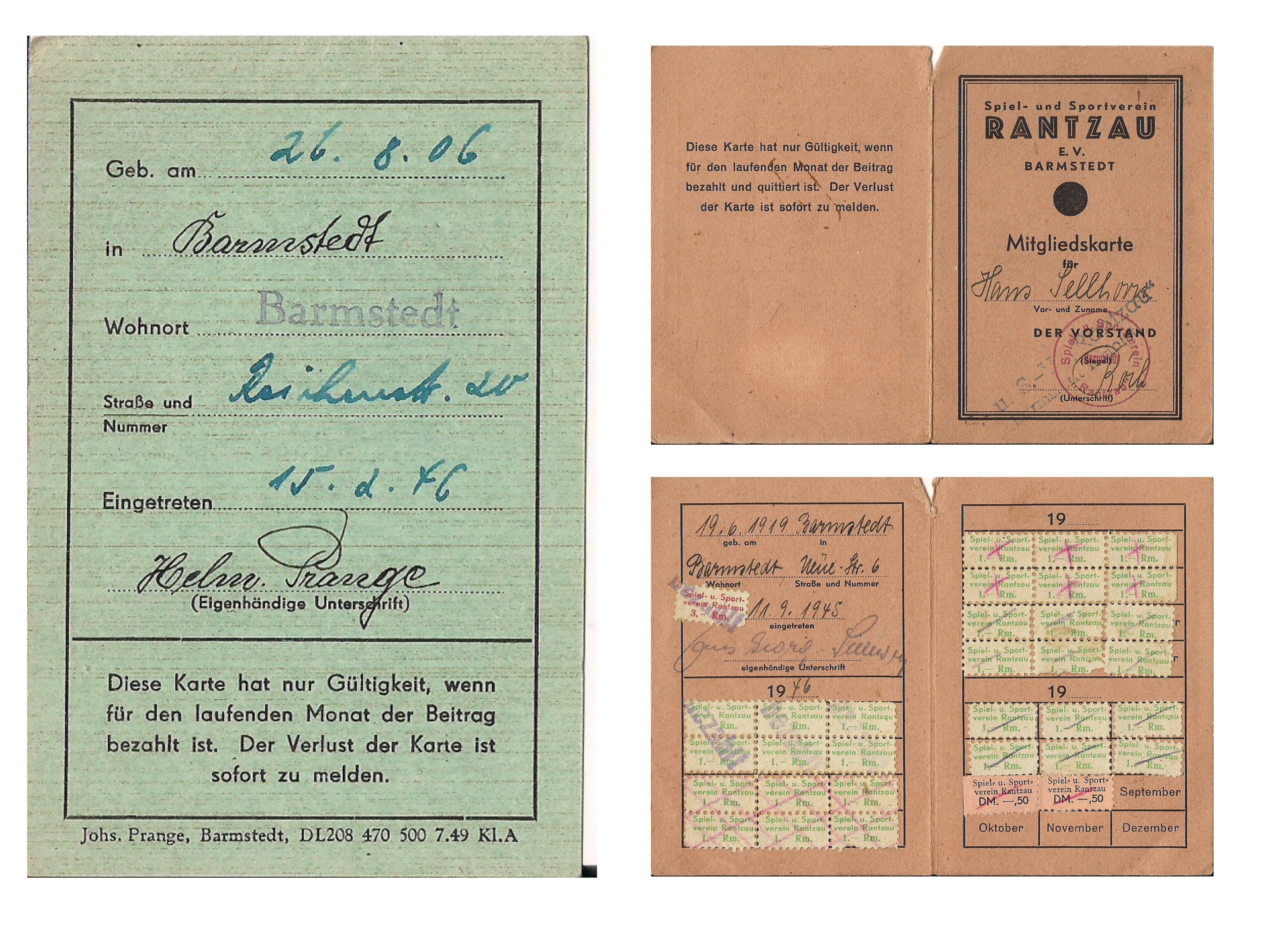 Besonders interessant die Umstellung von Reichsmark in Deutsche Mark mit der Währungsreform 1948, alles dokumentiert z. B. durch alte Mitgliedsausweise unserer damaligen Vereinsmitglieder Helmut Prange (Alt-Verleger der Barmstedter Zeitung) und Hans-Georg Sellhorn (damaliger Aktiver).