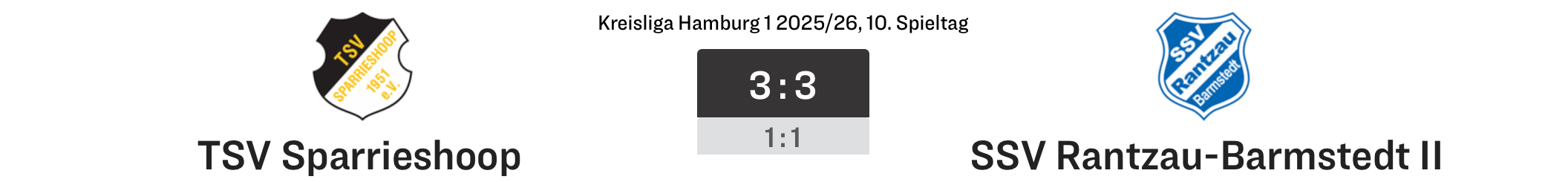 "Von den Torchancen her gesehen, hätten wir das Spiel in Sparrieshoop gewinnen können, am Ende können wir mit dem Punktgewinn glücklich sein", so SSV-Betreuer Pattrick Kinastowski nach dem 3:3 der Rantzauer Liga 2 beim TSV Sparrieshoop 1. In der ersten Spielhälfte verlief die Partie relativ ausgeglichen. Die Rantzauer vergaben zwei 100%-Chancen, die Sparrieshooper hingegen gingen nach einem leichtsinnigen Ballverlust mit 1:0 in Führung. Mit einem tollen Freistoßtor konnte Nils Schulz für den SSV den 1:1-Halbzeitstand sichern. In der zweiten Spielhälfte nutzten die Rantzauer erneut zwei dickste Torgelegenheiten nicht, nach einem weiteren unnötigen Ballverlust in der SSV-Abwehr gingen die Gastgeber mit 2:1 und nach einer Ecke sogar mit 3:1 in Führung. Die Rantzauer wehrten sich jedoch gegen die drohende Niederlage, und Sascha Berg verkürzte mit einem Handelfmeter auf 3:2. Nils Schulz reagierte bei einem Strafraumgewühl aufmerksam und sorgte drei Minuten vor Spielende für den 3:3-Ausgleich. SSV-Betreuer Pattrick Kinastowski lobte die Moral seiner Mannschaft: "Es war toll, dass wir das Spiel noch gedreht haben. Am Ende haben wir uns den einen Punkt erkämpft, wenn auch insgesamt für uns mehr drin gewesen wäre." Am kommenden Sonntag um 12 Uhr 30 spielt die SSV-Liga 2 zu Hause gegen TSV Heist 1.