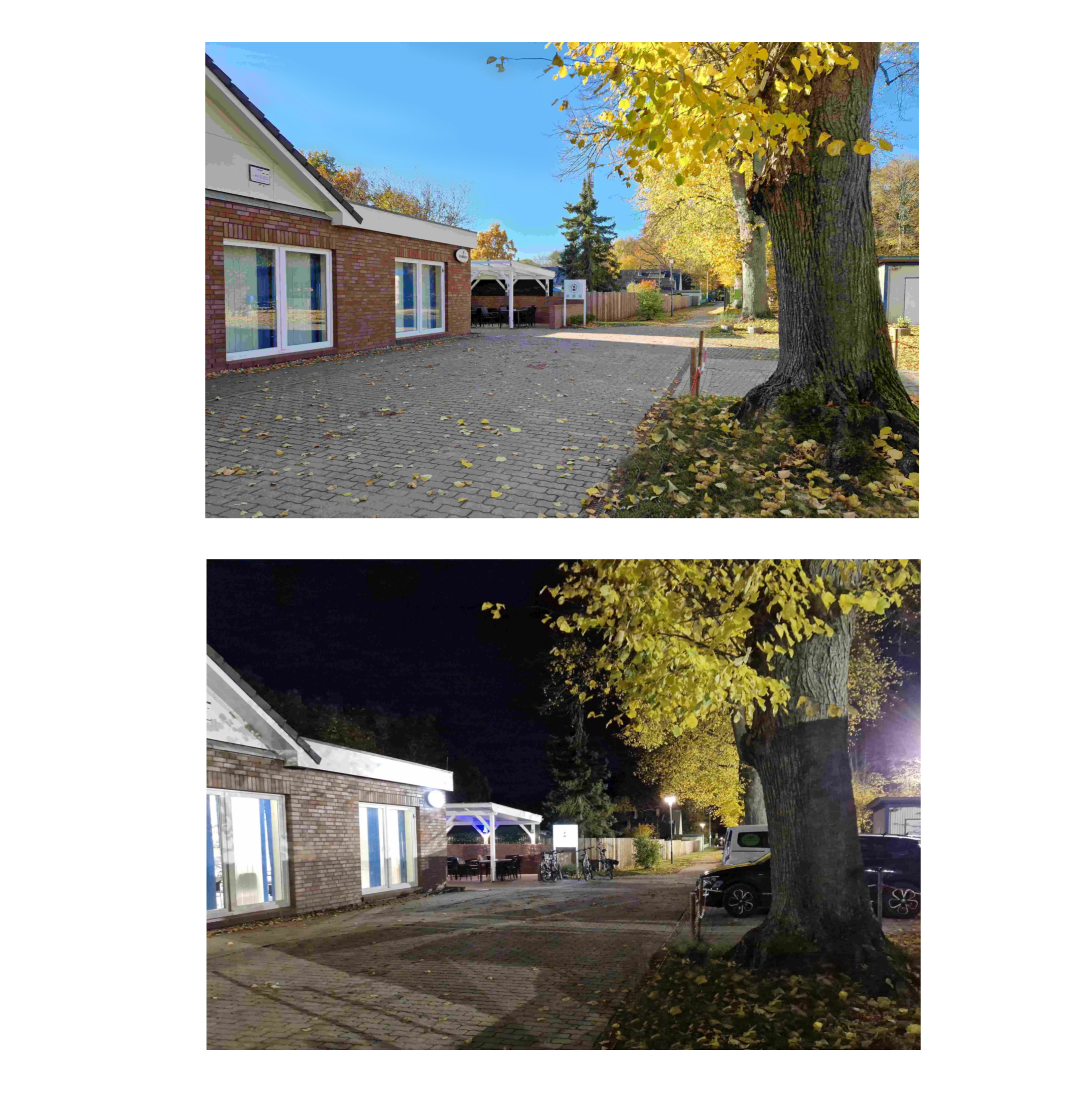 Die Düsterlohe, Heimat der Rantzauer Fußballer seit 1912. Momentaufnahmen am Tage, aber auch im Lichterschein.