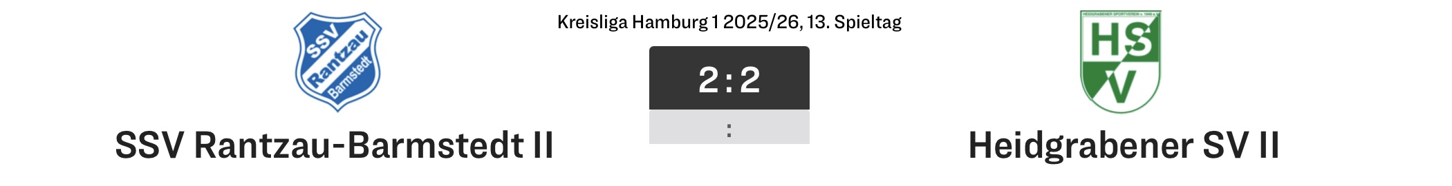 Die SSV-Liga 2 machte es spannend wie in den letzten Spielen: Das Team läuft einem mehr als unnötigen Rückstand hinterher und holt am Ende durch eine starke kämpferische Leistung noch einen verdienten Punkt. Die Partie zwischen der SSV-Liga 2 und Heidgraben 2 endete 2:2. In der ersten Spielhälfte bestimmten die Rantzauer das Spiel, und sie erspielten sich mehrere sehr gute Torchancen. Jedoch verfehlten die eigentlich guten Torschüsse jeweils knapp das Ziel. Die Gäste erreichten nur selten den Rantzauer Strafraum, aber nach einem dieser Angriffe stand es plötzlich 0:1, und dies war auch der Halbzeitstand und stellte den Spielverlauf auf den Kopf. In der zweiten Hälfte setzten die Rantzauer ihre Angriffsbemühungen fort, jedoch zunächst nicht mehr ganz so souverän wie vor dem Halbzeitpfiff. Dennoch vereitelte der Heidgrabener Torhüter drei gute Chancen der Rantzauer. Ähnlich aus heiterem Himmel wie beim ersten Gegentreffer fiel nach einer Ecke das 0:2 der Gäste. Das war das Startsignal für die Rantzauer Aufholjagd: Sascha Blunk hob aus einem Strafraumgewühl den Ball zum 1:2 in den Torwinkel, und Alex Hollm sorgte kurz vor Spielende für den hochverdienten Ausgleich mit einem weiteren Winkeltreffer. "In der ersten Hälfte haben wir ganz gut gespielt und eigentlich hätte es für uns eine klare Führung geben müssen, nach dem zweiten Treffer der Gäste haben wir uns dann doch sehr schnell wieder auf die Aufholjagd begeben, die letztlich den Punkt sicherte und den starken Einsatz der Mannschaft belohnt hat", so SSV-Co-Trainer Patrick Friebel.