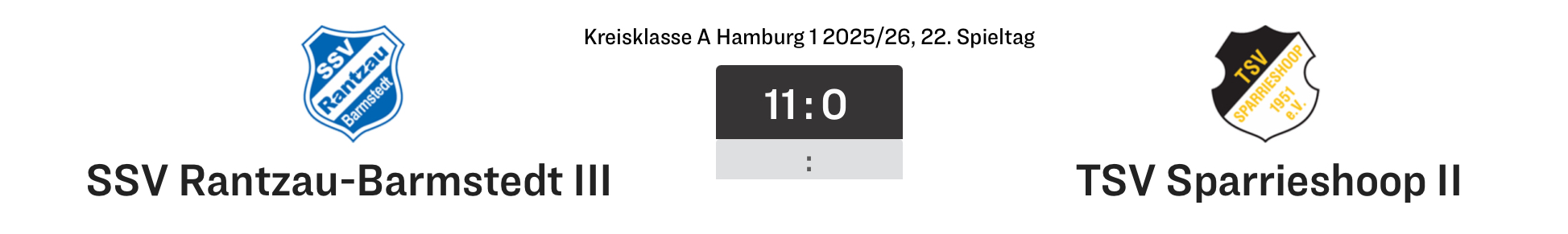 Es war kein Lokalderby, dafür war das Spiel zu einseitig. Mit 11:0 gewann das Team von Lukas Fuhlendorf und Inan Gergin am Freitagabend gegen die 2.Herren des TSV Sparrieshoop. Die Rantzauer machten die Niederlage der Vorwoche in Heidgraben durch eine überzeugende Mannschaftsleistung wett. Nur zweimal wurde der Rantzauer Torhüter gefordert, ansonsten lief eine schnell vorgetragene Angriffswelle nach der anderen auf das Gästetor. SSV-Trainer Inan Gergin: "Das war ganz guter Offensivfußball heute, und vor allem bin ich zufrieden, dass wir keinen Gegentreffer zugelassen haben." Unter den elf Toren der Rantzauer waren mehrere wirklich bildschöne, insbesondere zwei brillante Kopfballtore. In die Torschützenliste trugen sich gleich acht Spieler ein: Gregor Büchner (2), Jassin Brahim (2), Georgios Kotzapanagiotu (2), Sören Kröger, Fionn Winter, Jeremy Nestmann, Abdullrahman Khalaf und Robin Lindemann. Durch diesen Sieg verteidigt die SSV-Liga 3 ihren dritten Tabellenplatz, und am nächsten Wochenende geht es auswärts gegen Haseldorf 2.