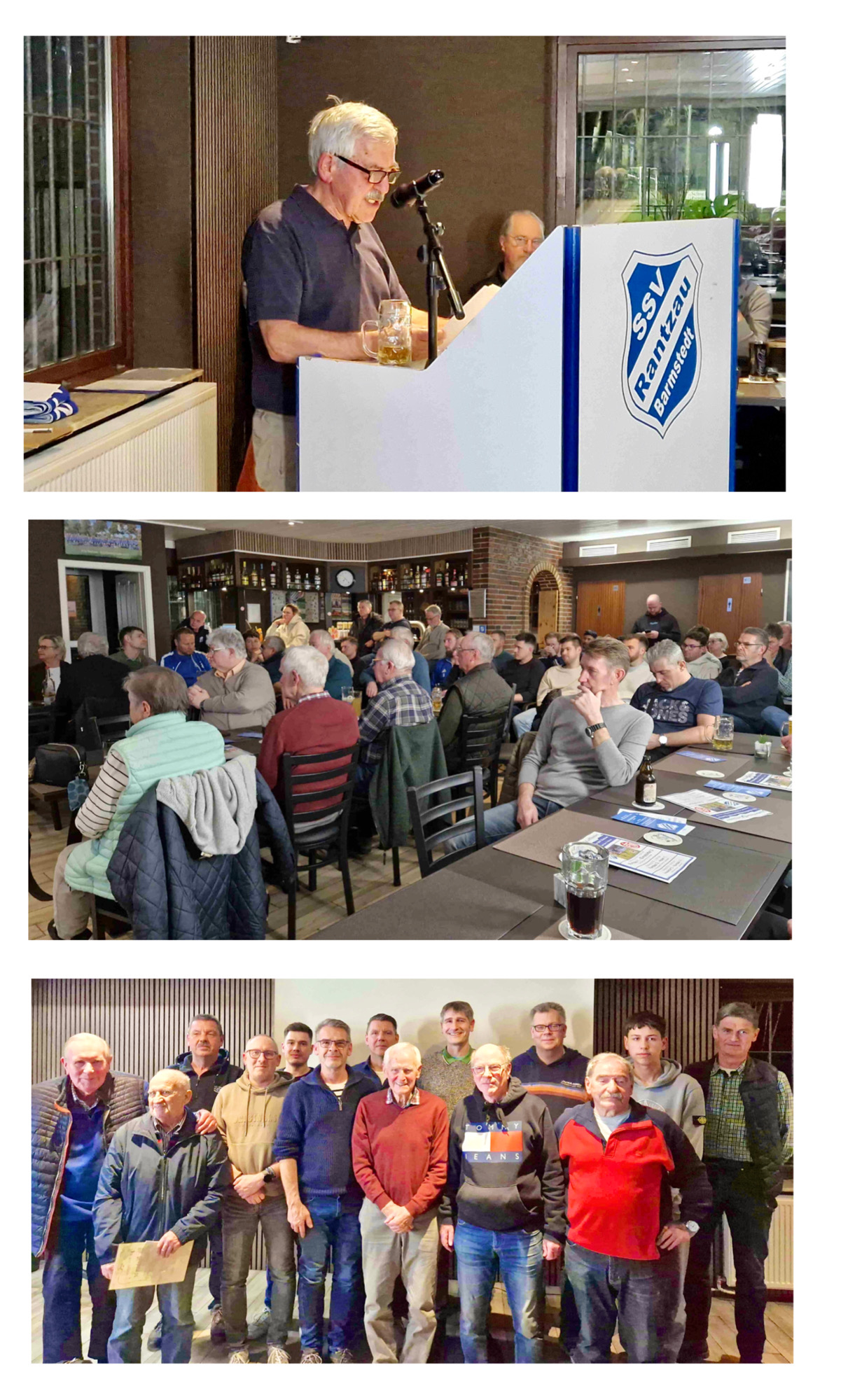 Mit stehenden und langanhaltenden Ovationen der Versammlung erfolgten die Ehrungen von Karl-Heinz Naujoks und Siegfried Seidler für 70 Jahre sowie von Bruno Arps für sagenhafte 80 Jahre Mitgliedschaft und Engagement im SSV Rantzau, und dieser ließ es sich nicht nehmen noch ein paar unterhaltsame Worte an die Versammlung zu richten.