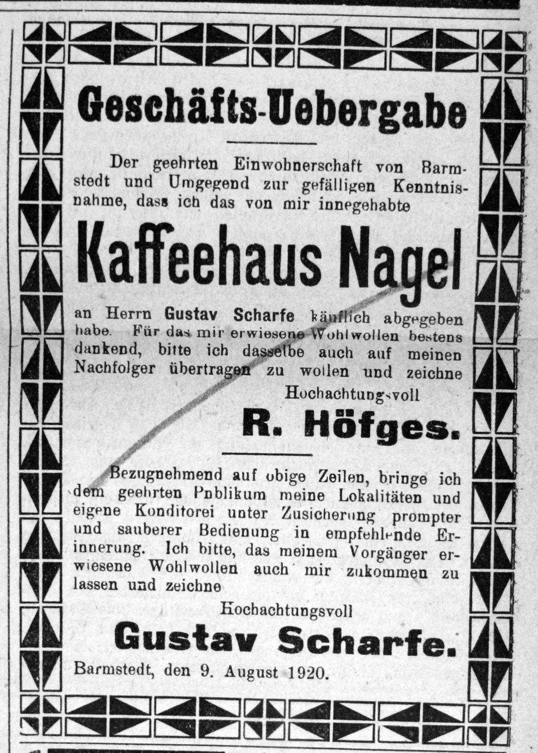 In den Jahren 1934 bis 1956 wurde es von der Alt-Barmstedter Familie Schmidt betrieben. Sohn und leidenschaftlicher SSV-Fan Peter Schmidt ist auch heute noch treuer Gast bei Heimspielen seiner SSV-Liga auf der Düsterlohe. Im „Kaffeehaus Heinrich Schmidt“ fanden wiederholt Zusammenkünfte des SSV statt. Geschichtsträchtig ist eine Mitgliederversammlung im Jahre 1933, in der die Vereine von der Berliner Reichsregierung angewiesen wurden, ihre Vorstände in „Vereinsführer“ umzufunktionieren (nachzulesen im damaligen Protokoll).